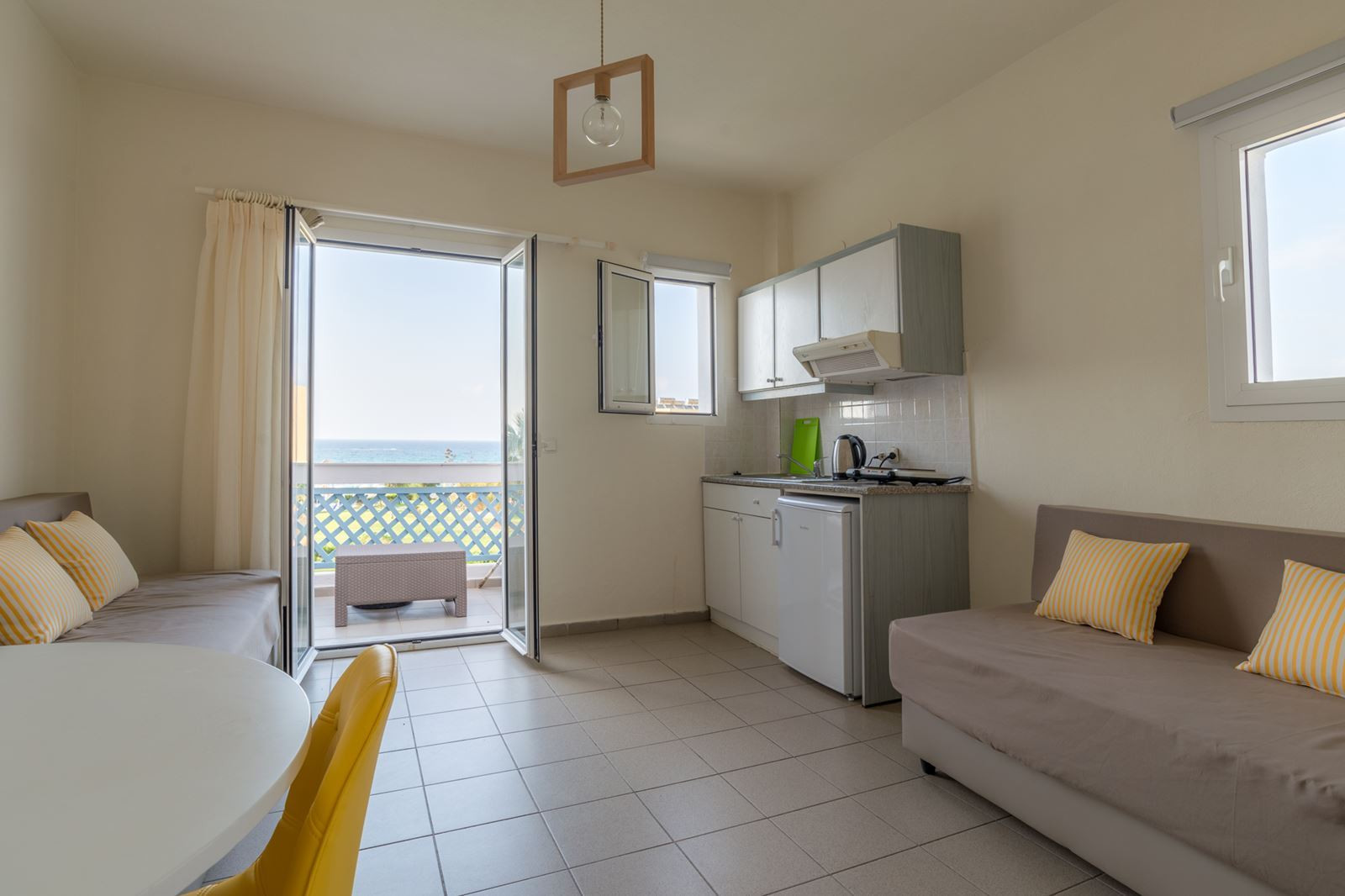 De 19 comfortabele studio’s en appartementen van Windmill Apartments I zijn van alle gemakken voorzien. Draai je zelf een smakelijke maaltijd in elkaar in het keukentje of laat je je lekker verwennen in een goed restaurant aan de boulevard van Malia? Je sluit de avond in ieder geval goed af in een van de gezellige barretjes die deze badplaats telt. Denk je na over een vakantie op Kreta, twijfel dan niet langer en kies voor Windmill Apartments I. Fijne vakantie!